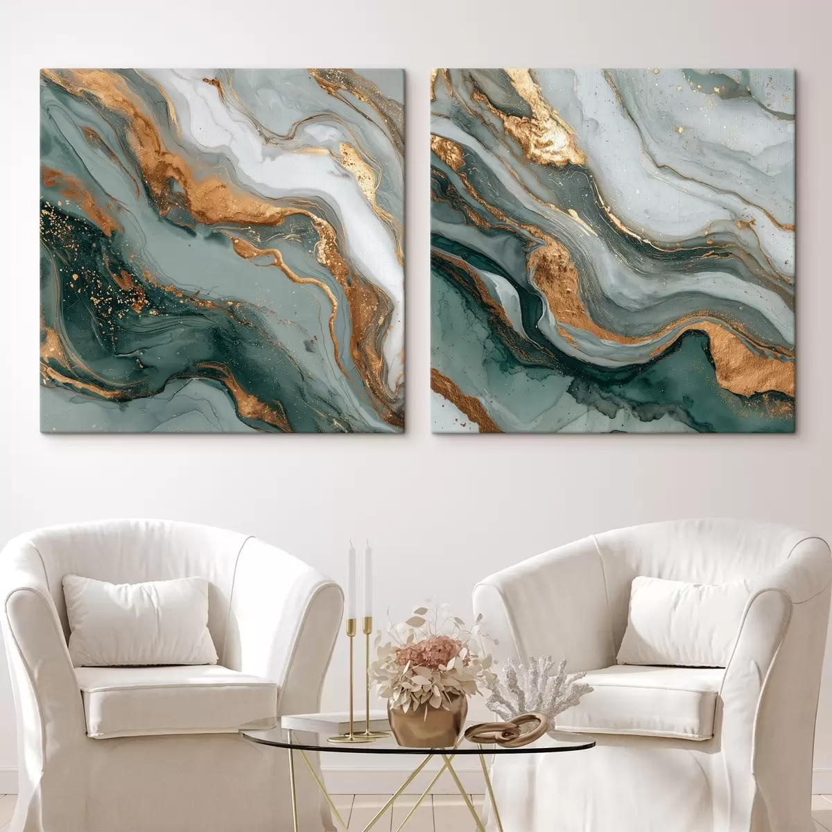 Schilderijen Marmerstructuur in grijs-turquoise tinten m00744