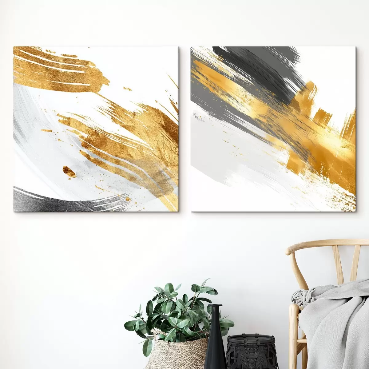 Schilderij Dynamische abstractie met gele en grijze strepen Art. m00748