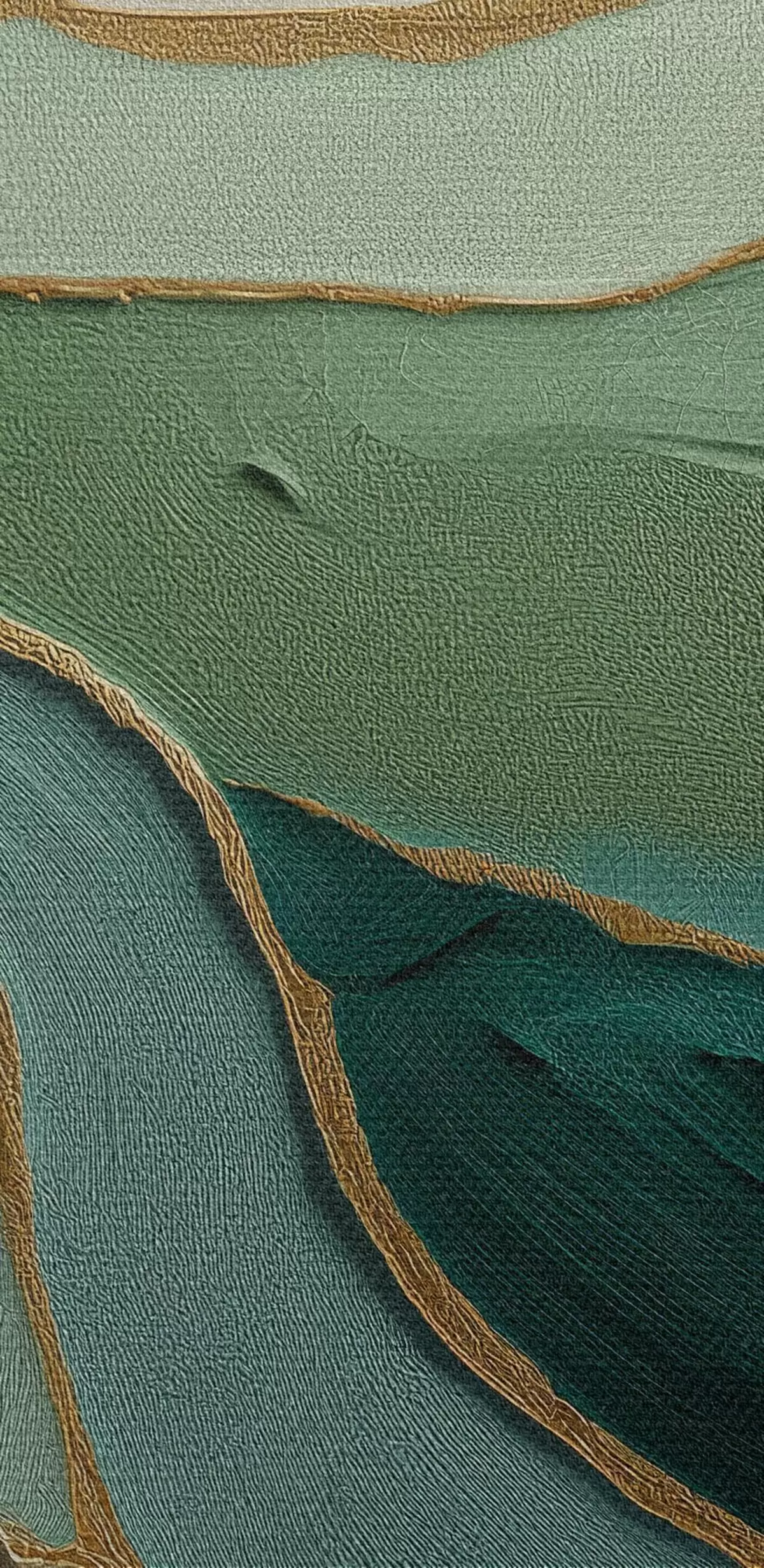 Schilderij Smaragdgroene gelaagde abstractie met een gele omtrek Art. m00766