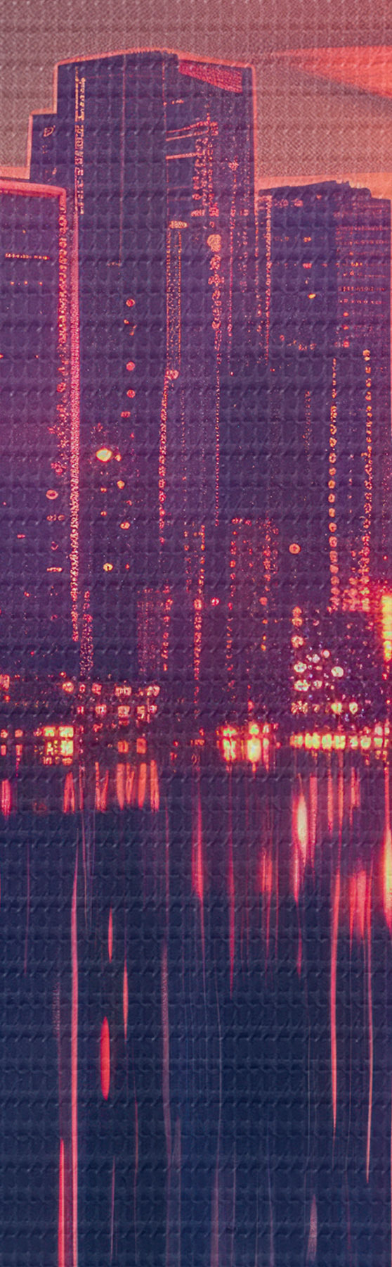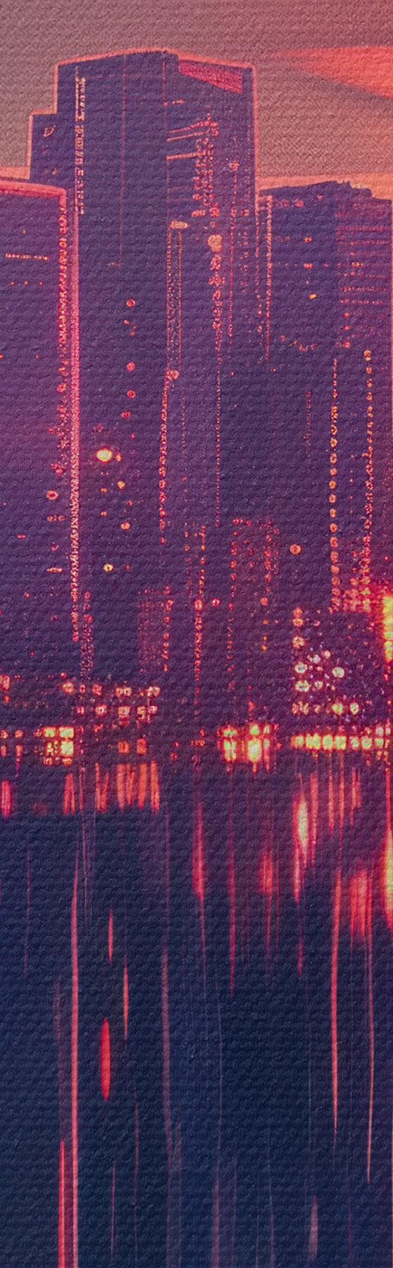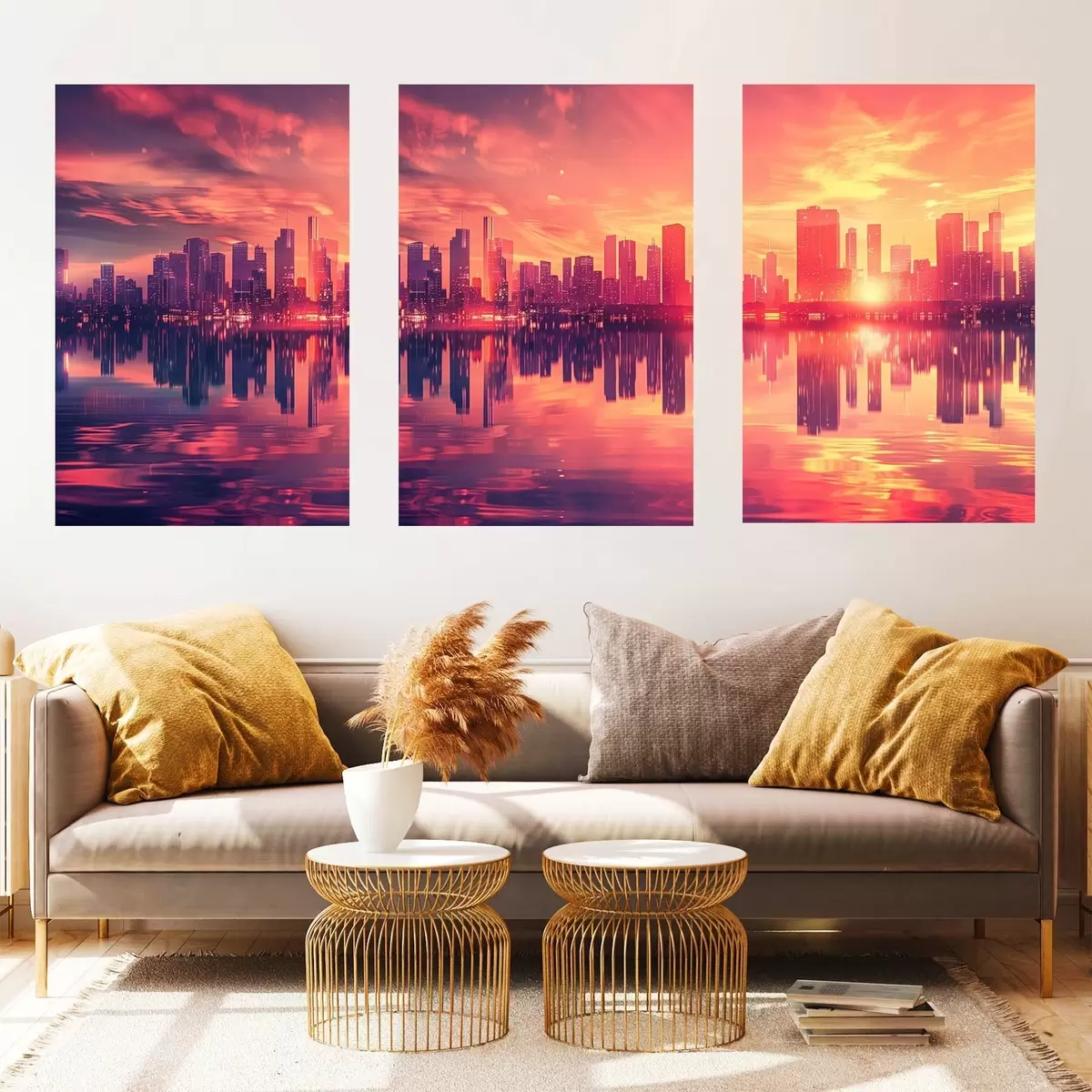 Schilderij Romantische zonsondergang met een moderne stad op de achtergrond Art. m00784