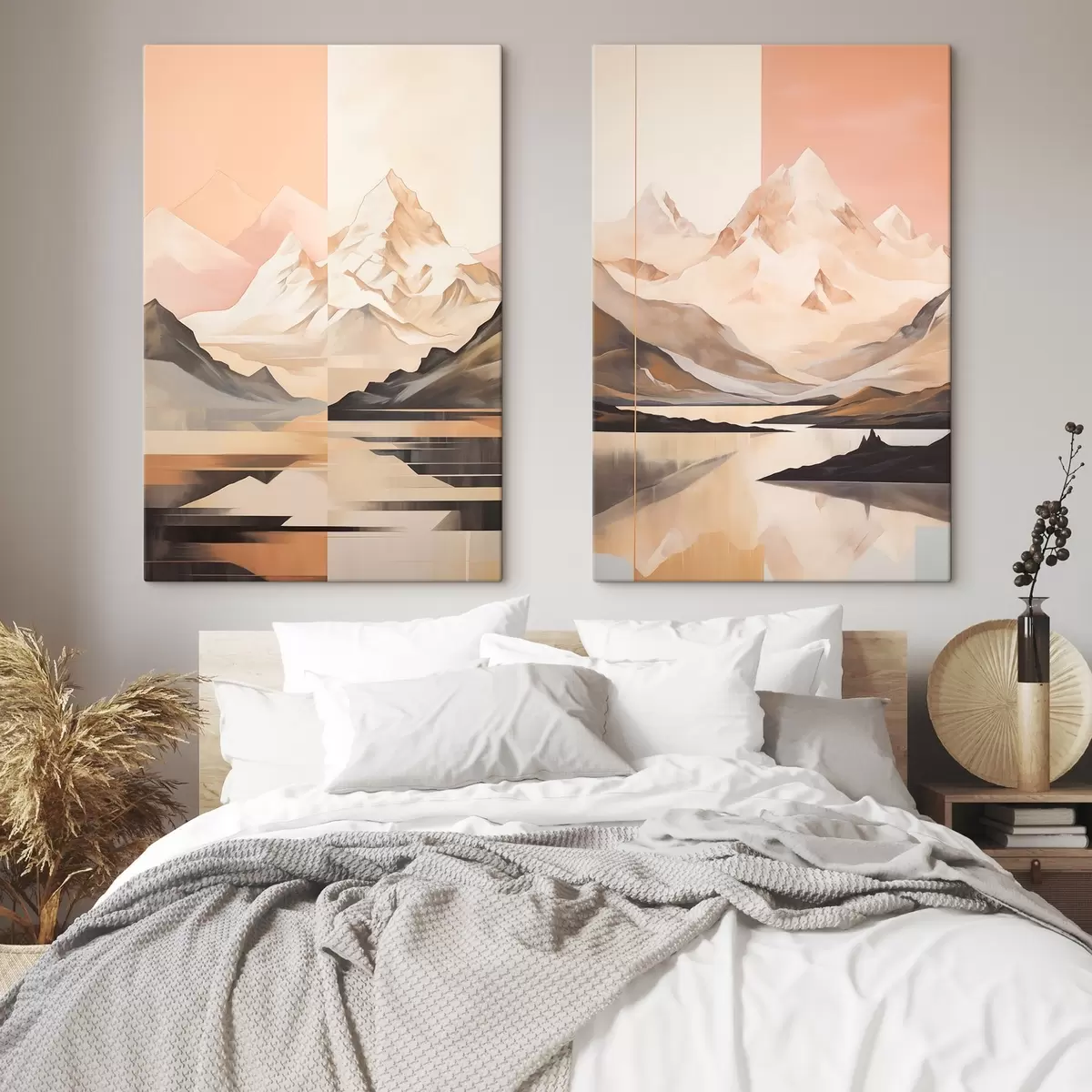 Schilderijen Abstract landschap met bergen en een meer, pastelkleuren, minimalistische stijl m00830