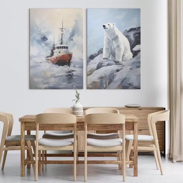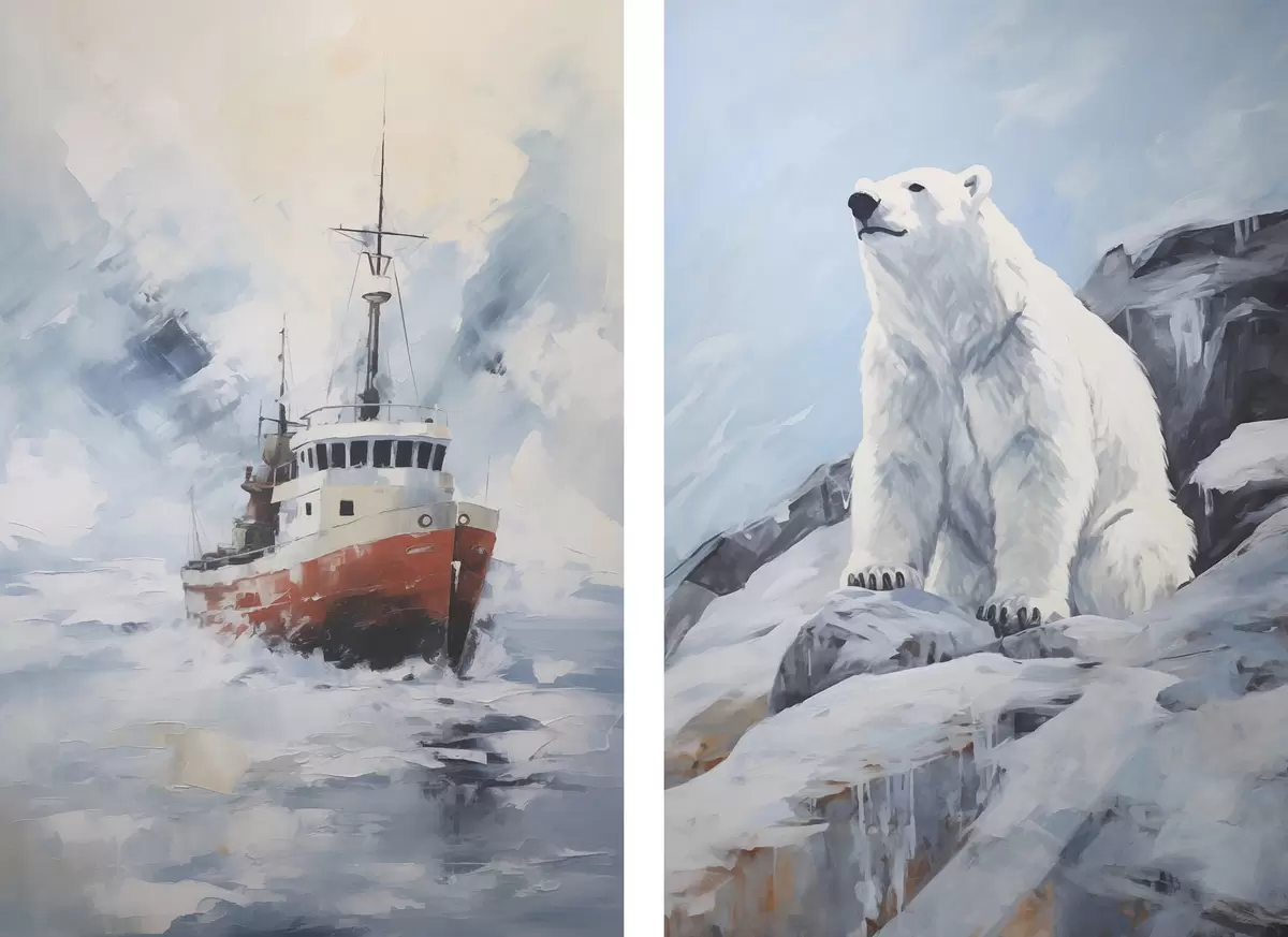 Schilderij Een ijsbreker en een beer tussen de ijsschotsen Art. m00839