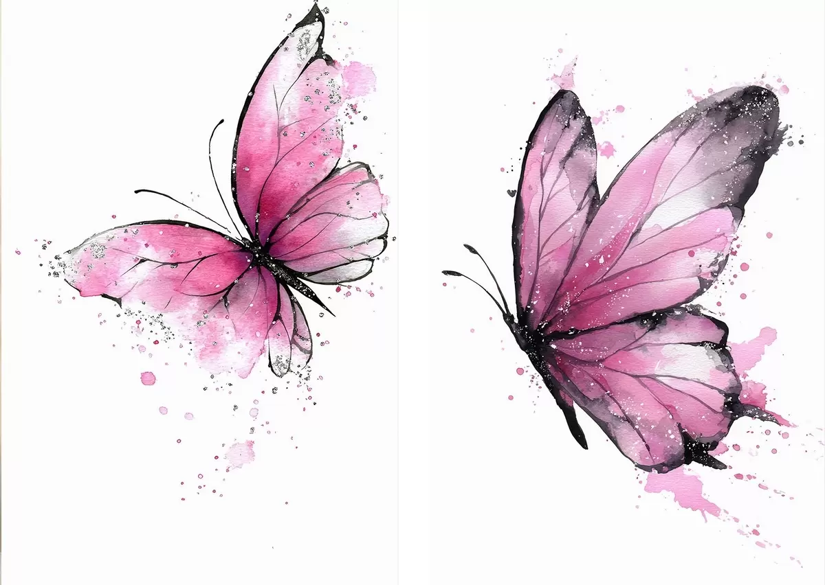 Schilderij Prachtige waterverfvlinders Art. m00863