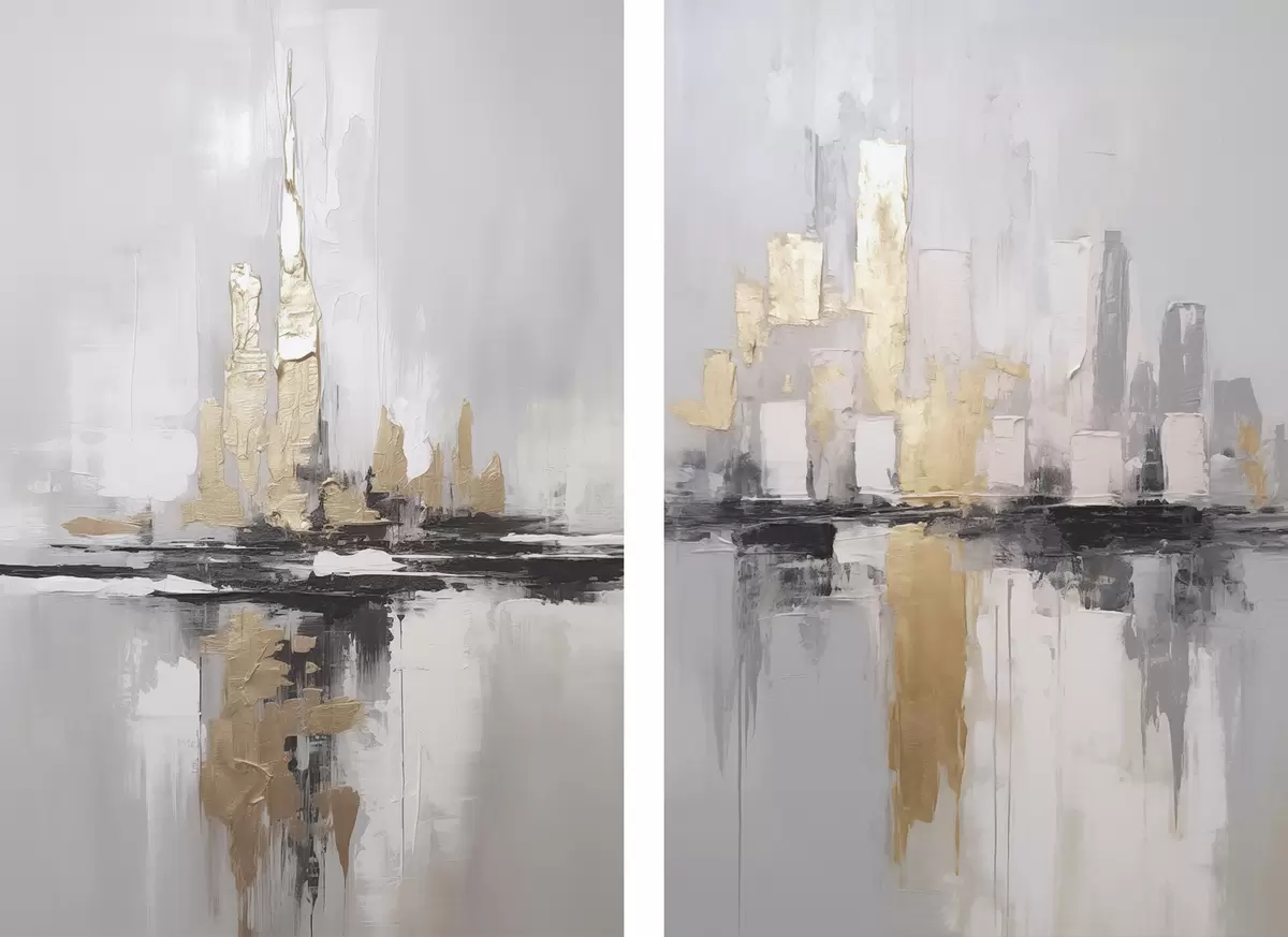 Het schilderij kan direct na ontvangst worden opgehangen. Het schilderij wordt opgespannen op een 2 cm breed houten spieraam.