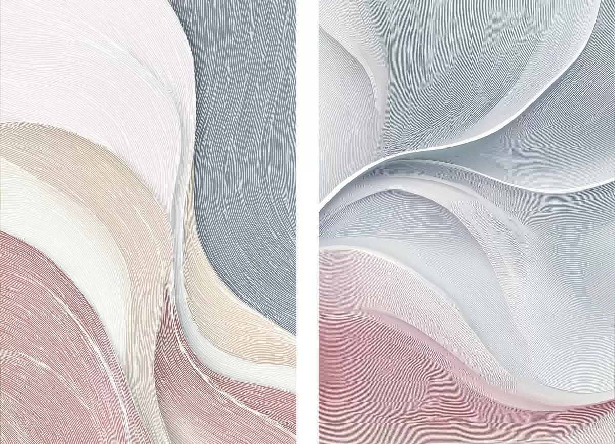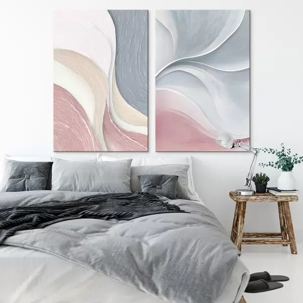 Schilderij Abstracte golven in roze-beige-blauwe tinten Art. m00874