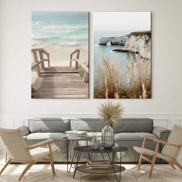 Schilderij Kustkliffen en droog gras aan de turquoise zee Art. m00875