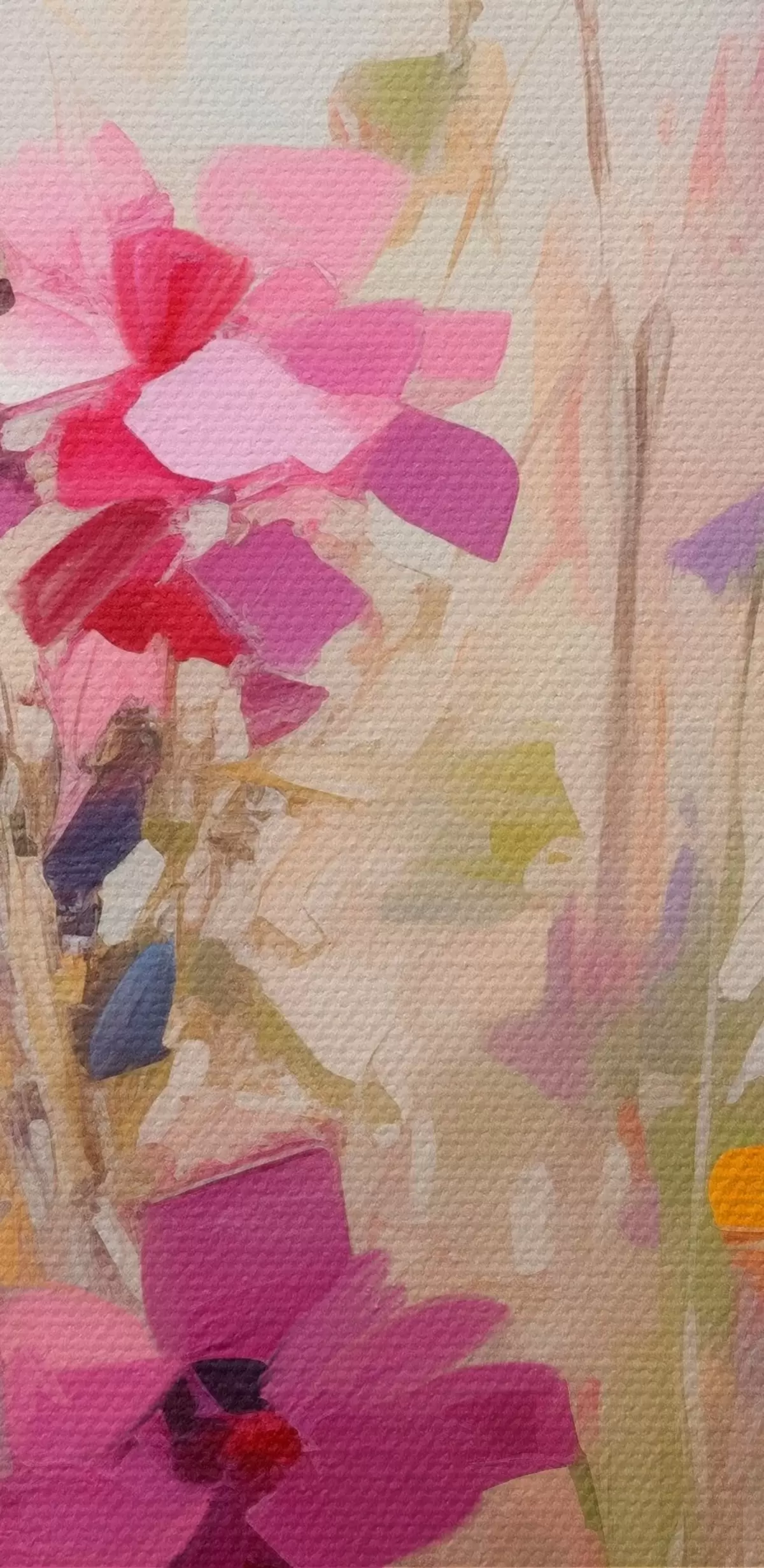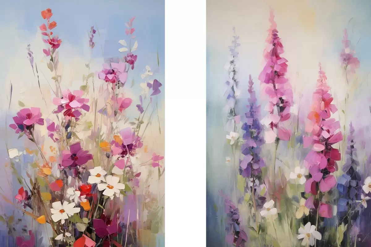 Schilderij Levendige bloemen met witte madeliefjes in een veld, zachte penseelstreken, pastelkleuren, impressionistische stijl Art. m00882
