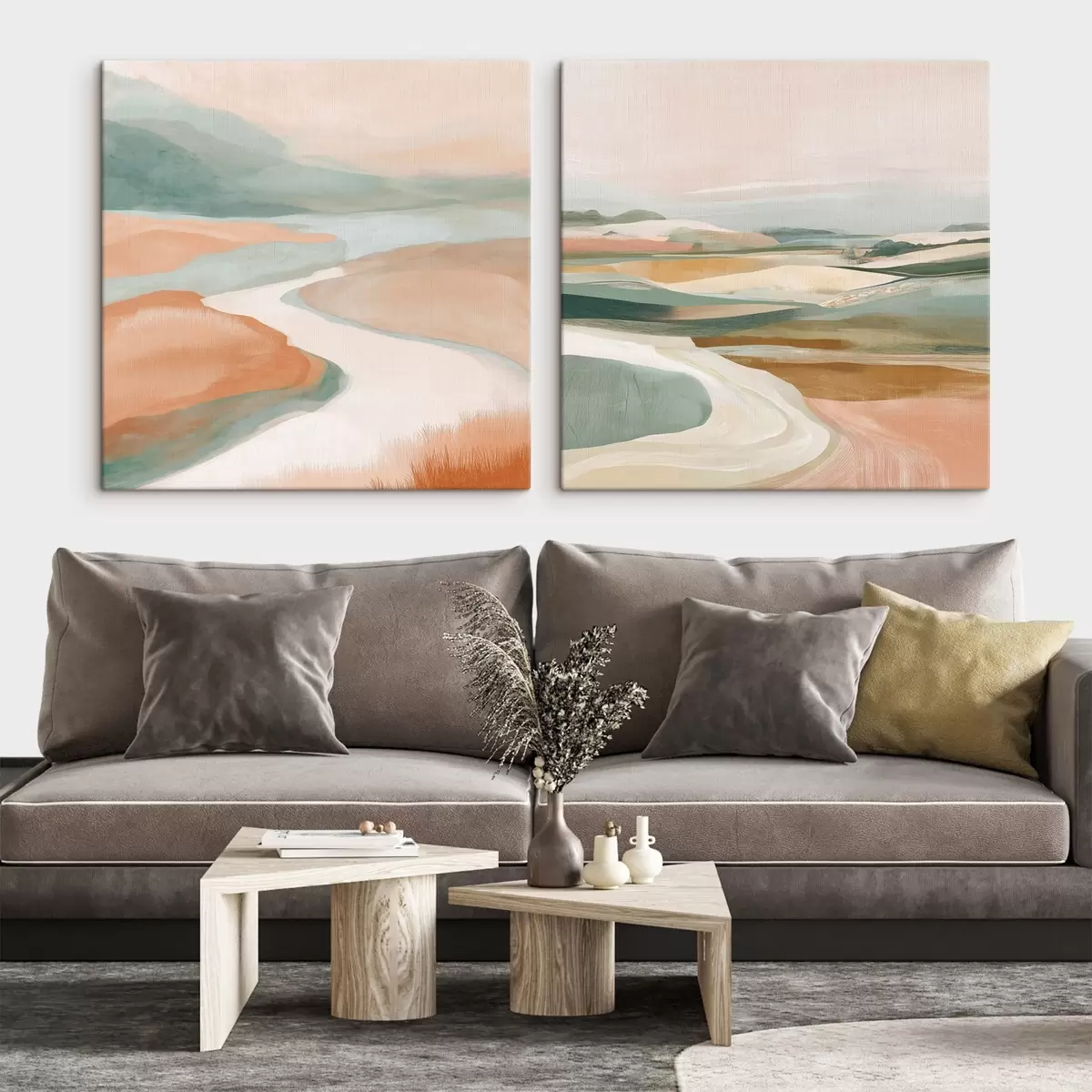 Schilderij Abstracte heuvels en rivier in pastelkleuren Art. m00896