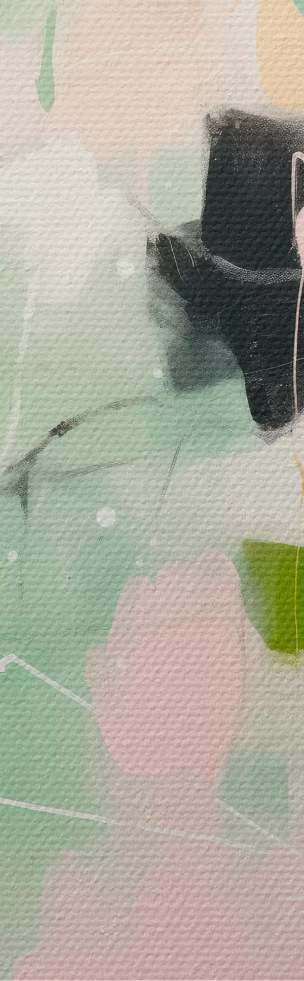 Het schilderij kan direct na ontvangst worden opgehangen. Het schilderij wordt opgespannen op een 2 cm breed houten spieraam.