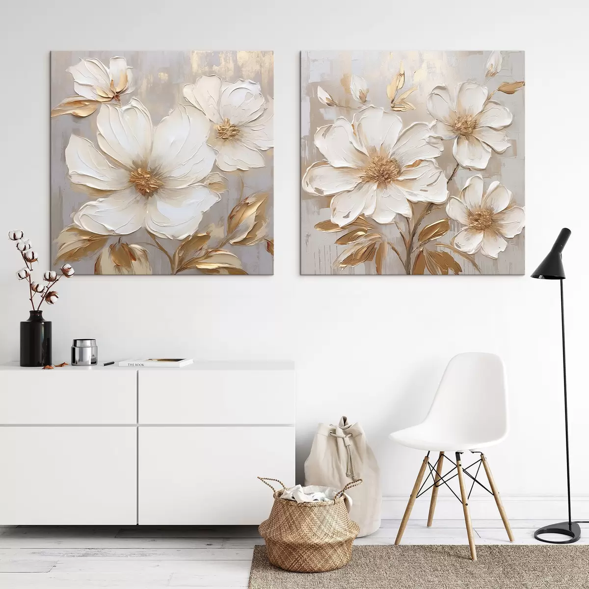 Schilderijen Tweeluik met grote bloemen in lichte, warme kleuren m00927