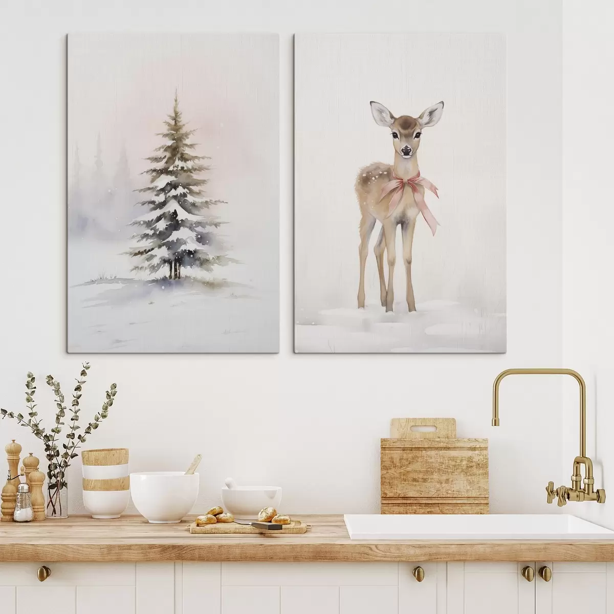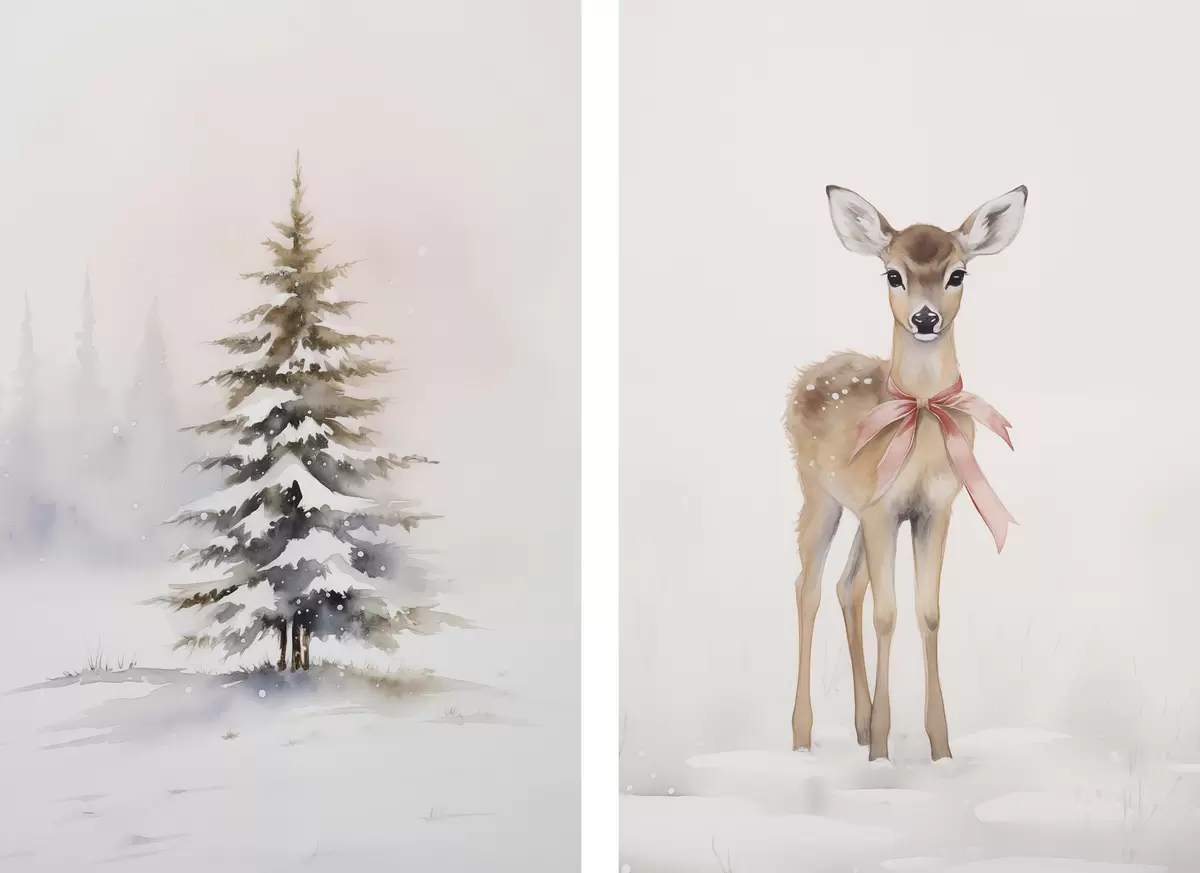 Schilderij Sparren en reeën Art. m00933