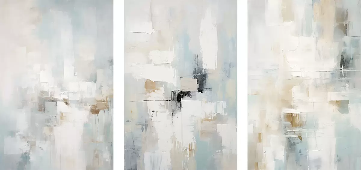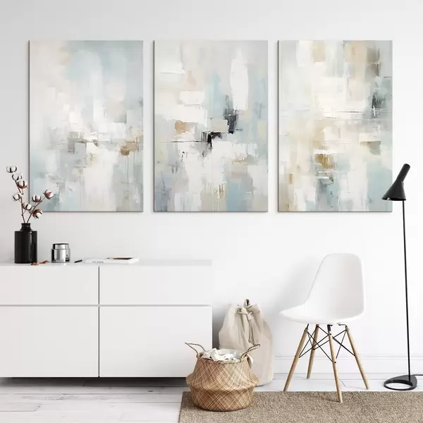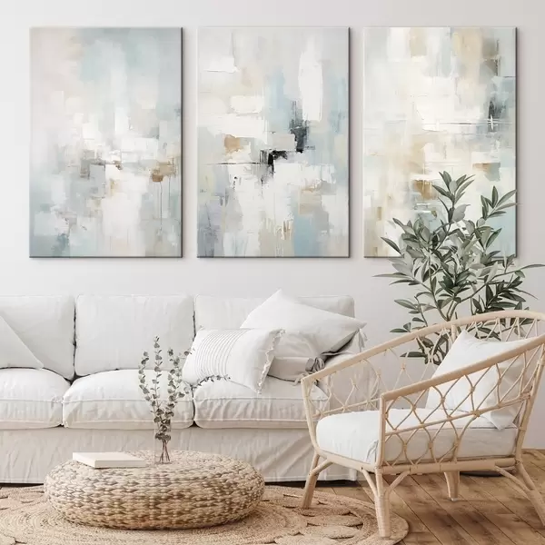 Schilderij Luchtig abstract kleurenpalet: wit, beige en lichtblauw Art. m00966