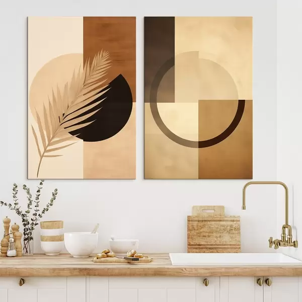 Schilderijen Terracotta en beige geometrische vorm met palmbladmotief m00968