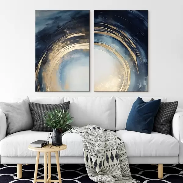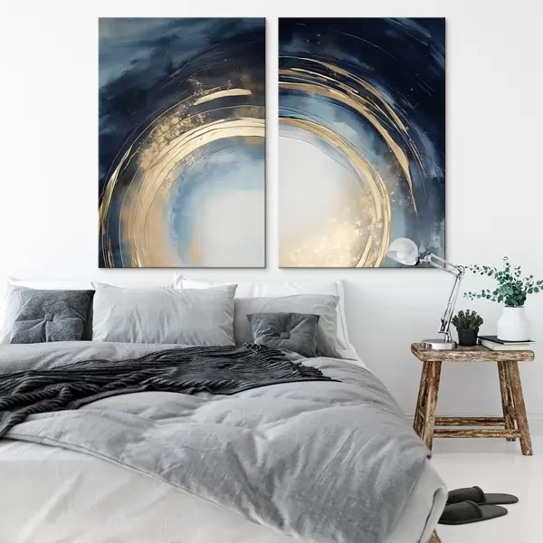 Schilderijen Middernachtblauwe cirkelvormige veeg met metalen bogen m00969