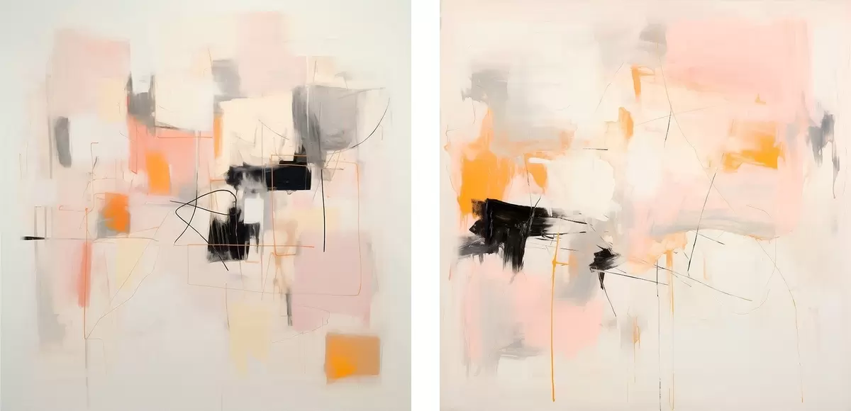 Schilderij Artistieke compositie met contrasterende accenten in twee delen Art. m00980