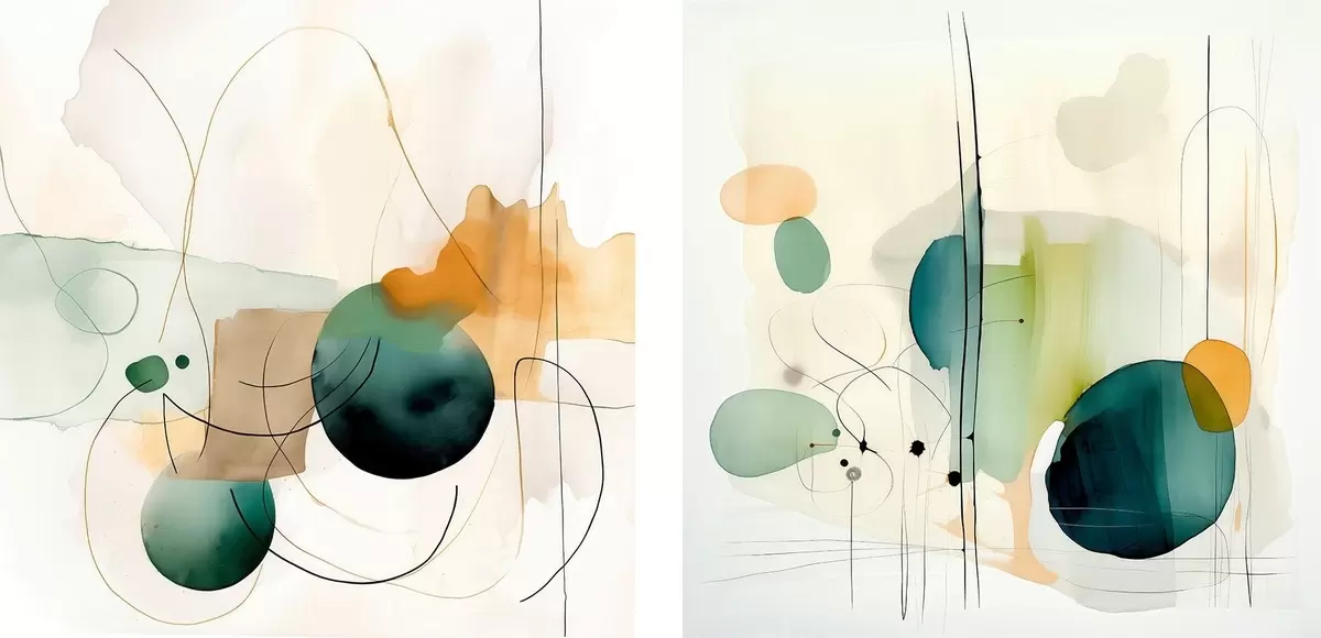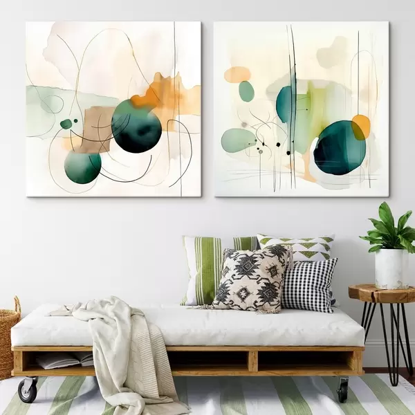 Schilderij Tweedelige abstracte compositie met zachte kleurvlakken Art. m00985