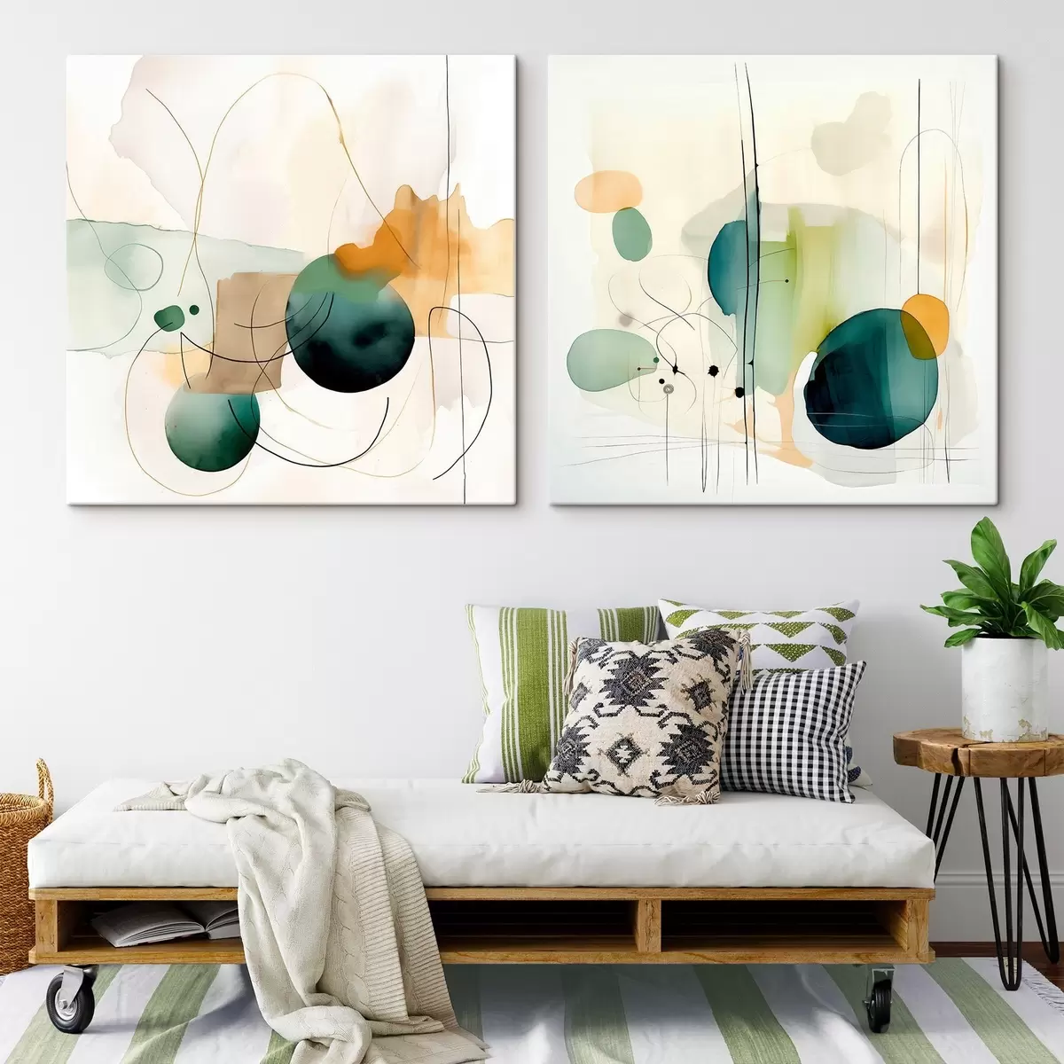 Schilderijen Tweedelige abstracte compositie met zachte kleurvlakken m00985