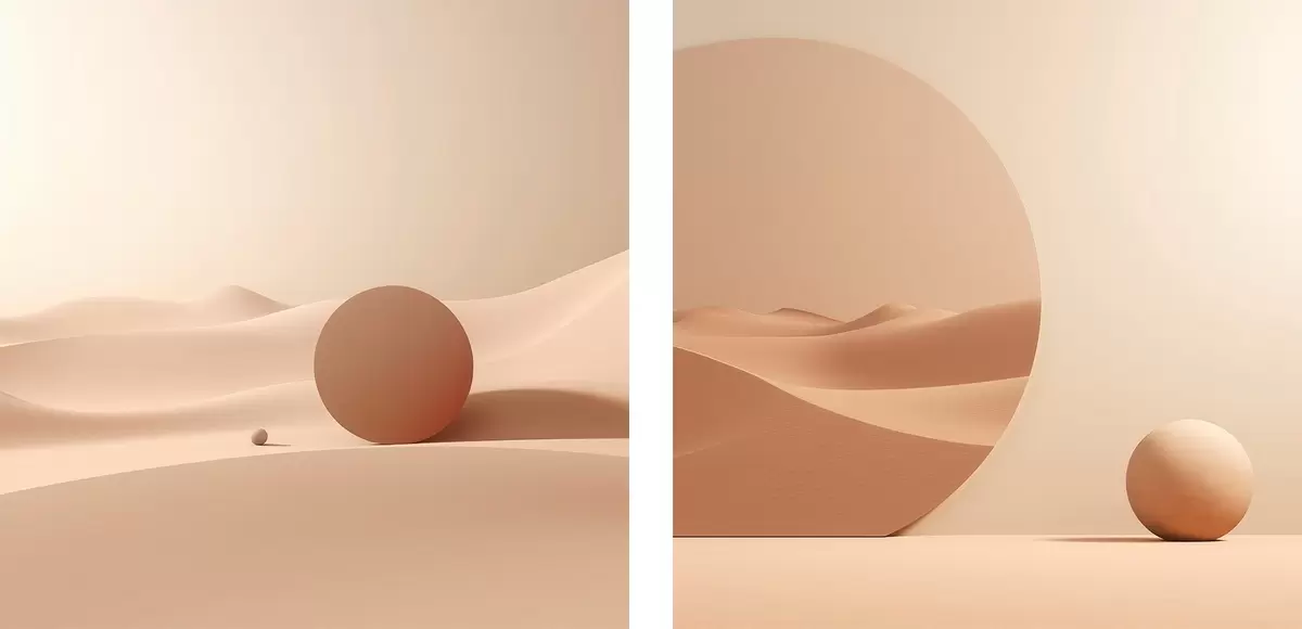Schilderij Compositie met rustige ruimtes en een geometrische vorm Art. m00990