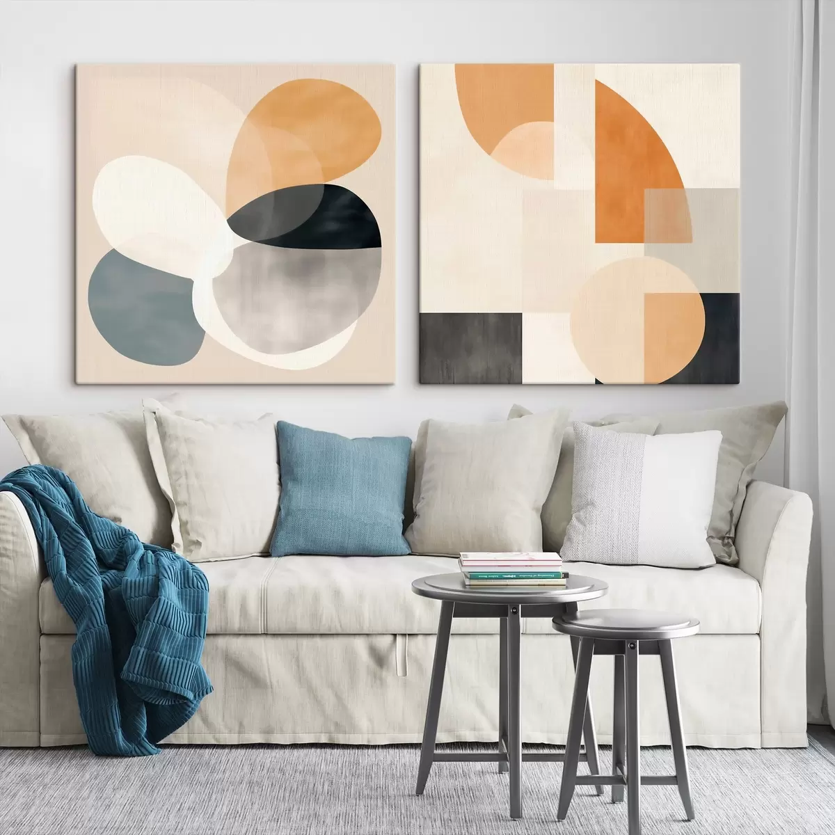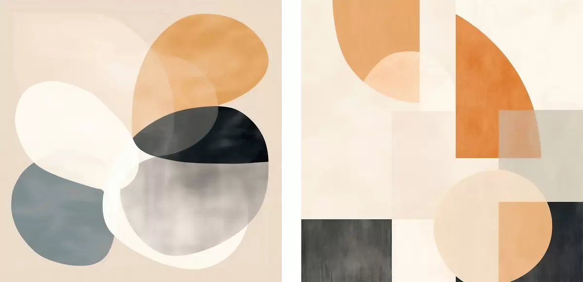 Schilderij Afgeronde kruispunten van vormen in aquarelminimalisme Art. m00993