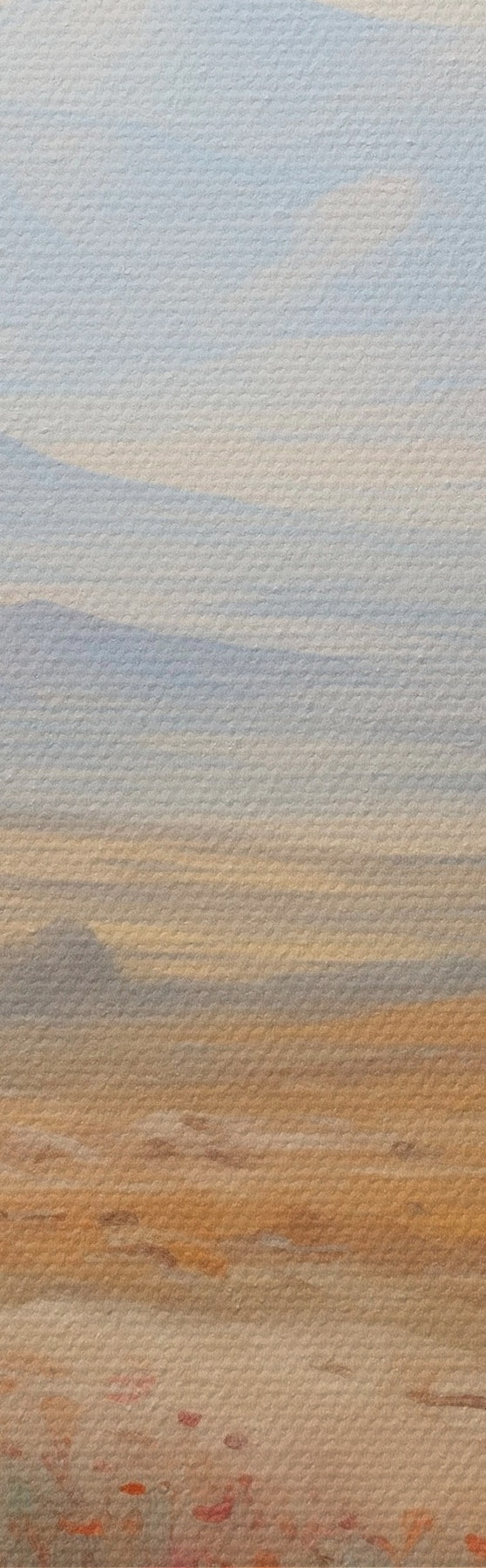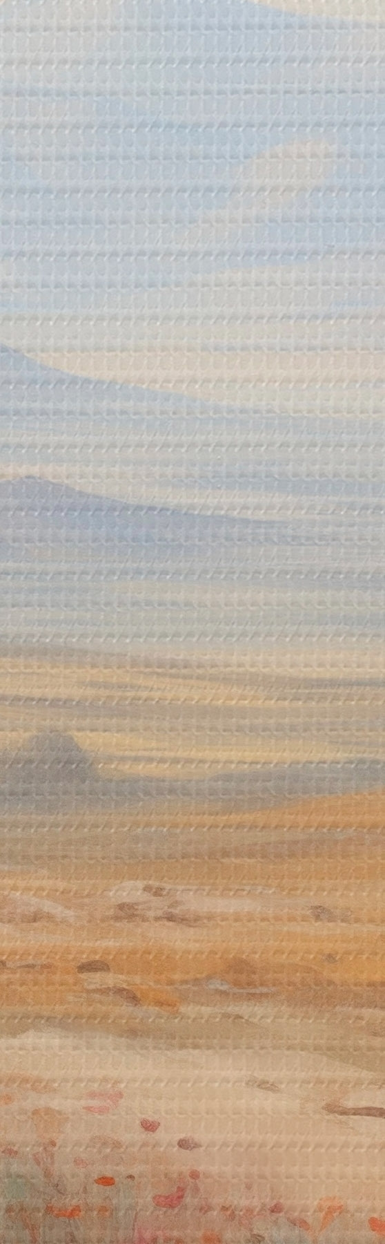 Schilderij Landschap, een veld met kleurrijke bloemen en bergen op de achtergrond, zachte pastelkleuren Art. m01003