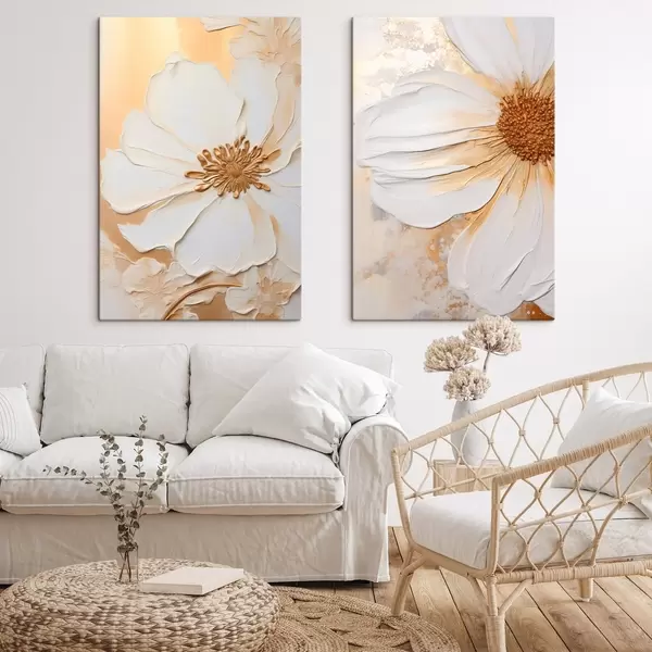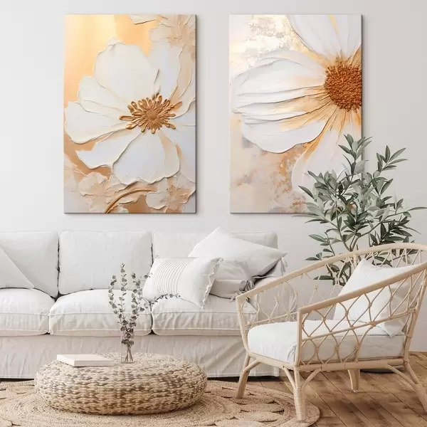 Schilderij Een witte bloem met delicate bloemblaadjes, een abstracte achtergrond met textuur, elegant, decoratieve kunst Art. m01006