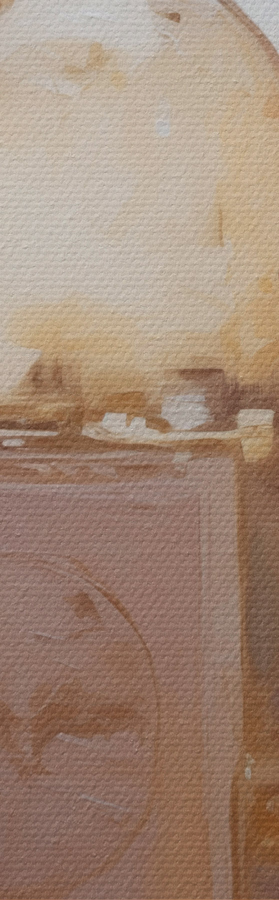 Het schilderij kan voorzichtig worden schoongeveegd met een droge zachte doek of spons; het wordt niet aanbevolen om natte producten te gebruiken. Het gebruik van een vochtige spons is alleen toegestaan als het schilderij gevernist is.