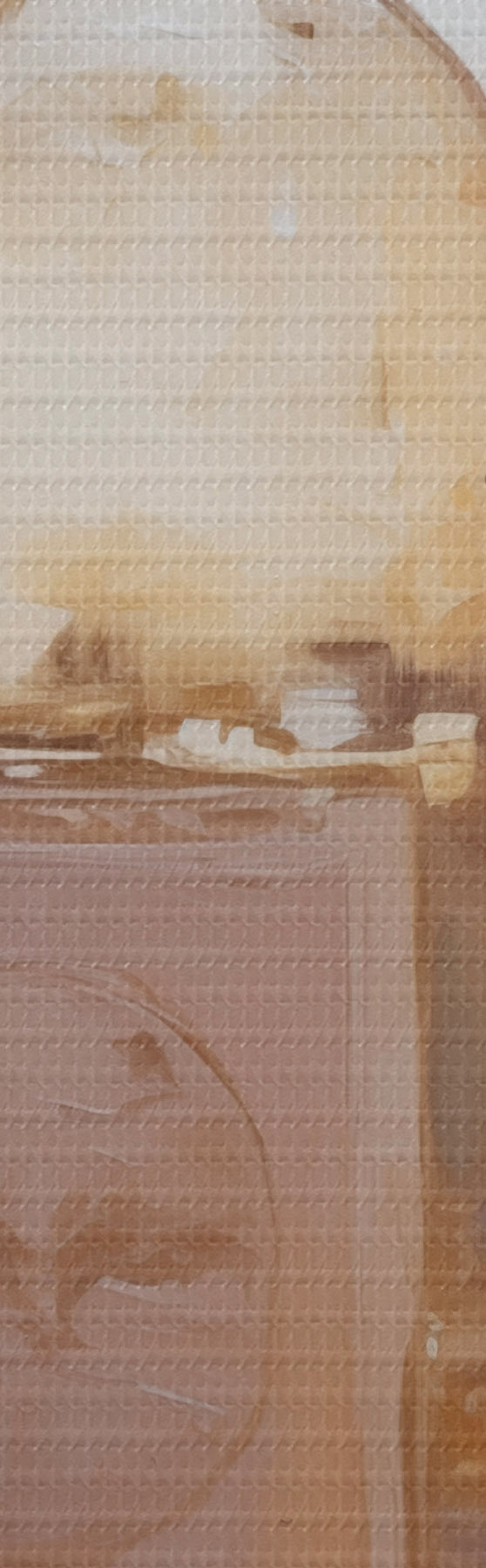 De fijne weving van draden op dit doek lijkt op het oppervlak van professionele schildersdoeken.