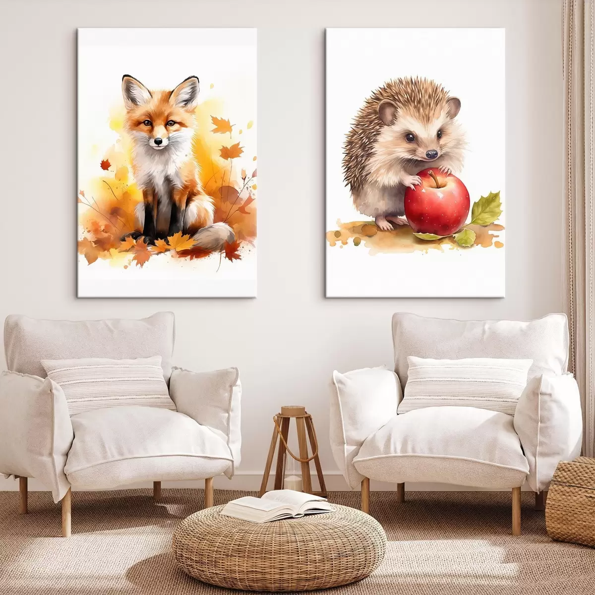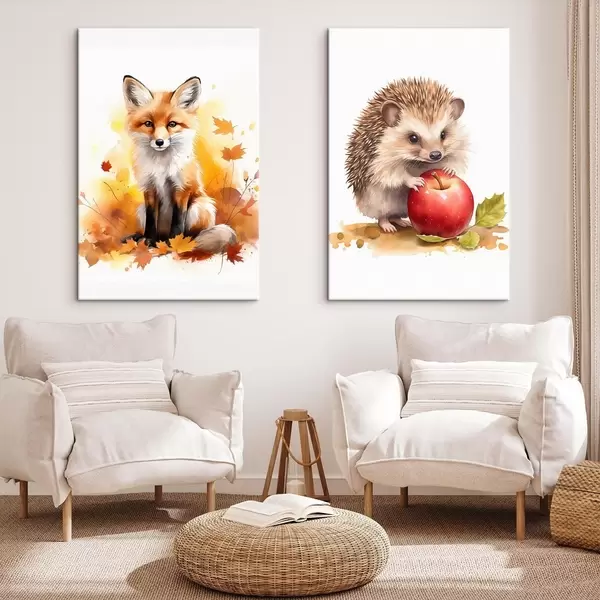 Schilderijen Vos en egel, imitatie-aquarel m01050