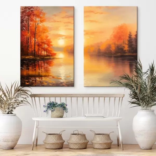 Schilderijen Herfstbos tegen de zonsondergang m01051