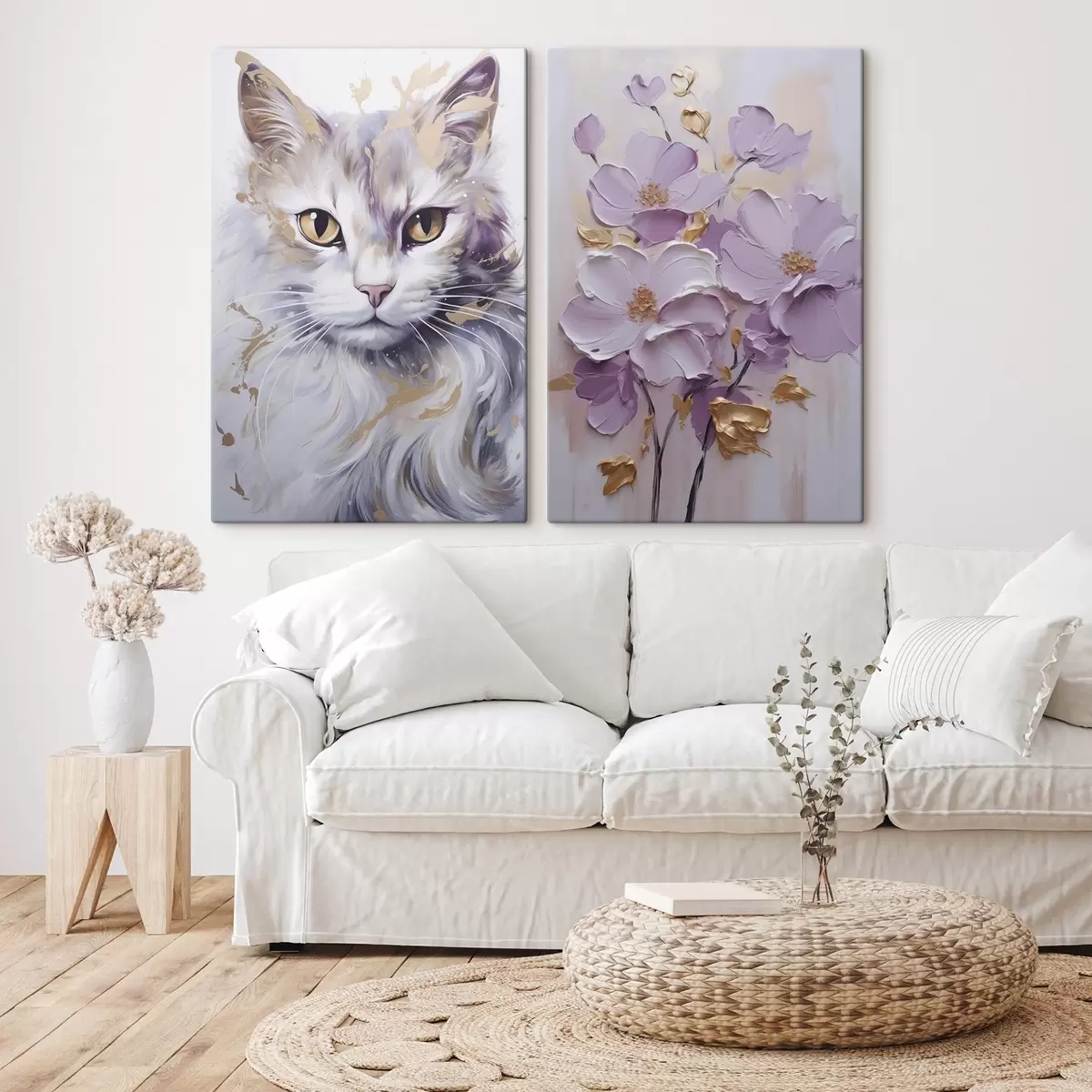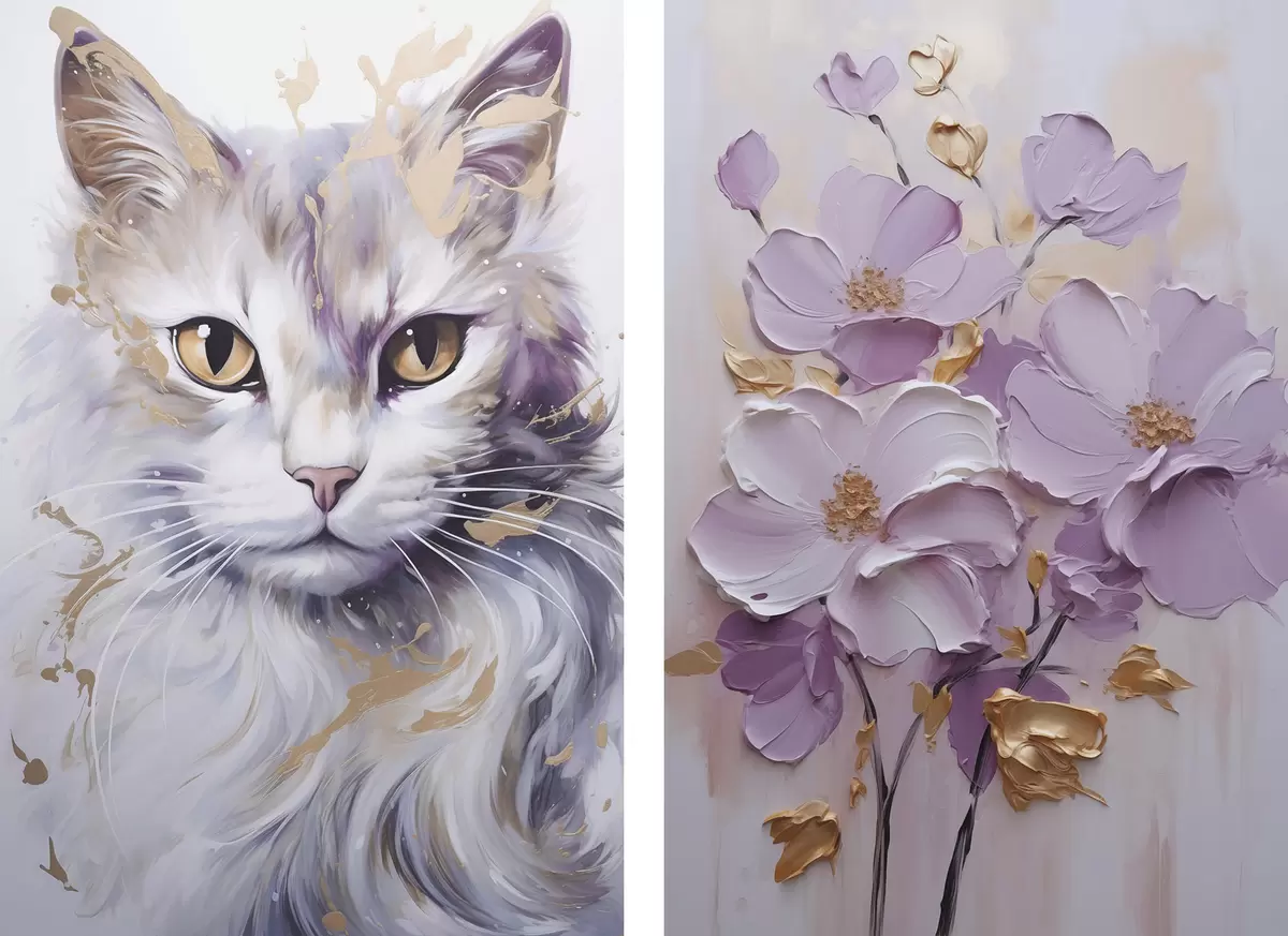 Schilderijen Abstracte bloemen en een kat m01056