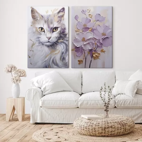 Schilderij Abstracte bloemen en een kat Art. m01056