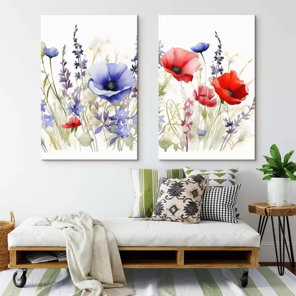 Schilderijen Klaprozen in een veld, aquareleffect m01067