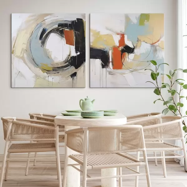 Het schilderij kan direct na ontvangst worden opgehangen. Het schilderij wordt opgespannen op een 2 cm breed houten spieraam.