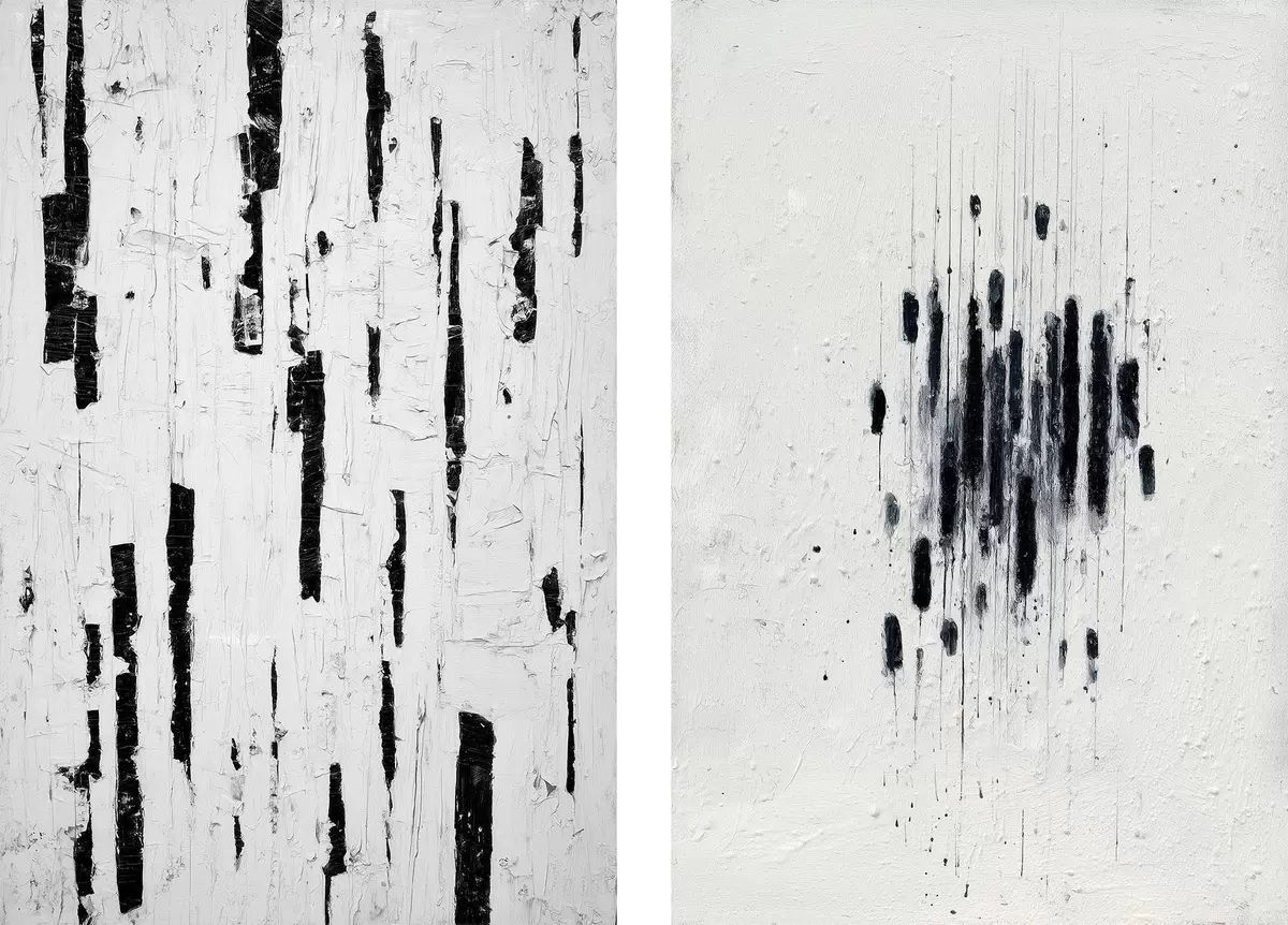 Schilderijen Abstracte kunst in zwart-wittinten met een imitatie van natuurlijke texturen m01097