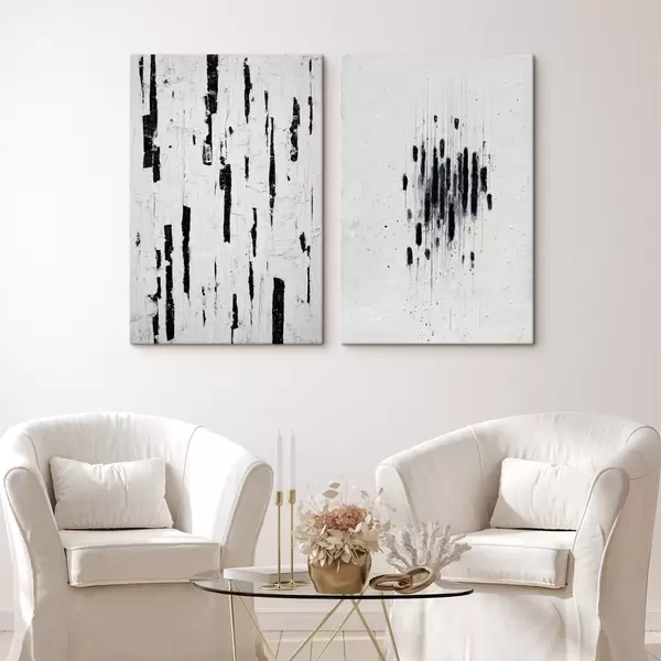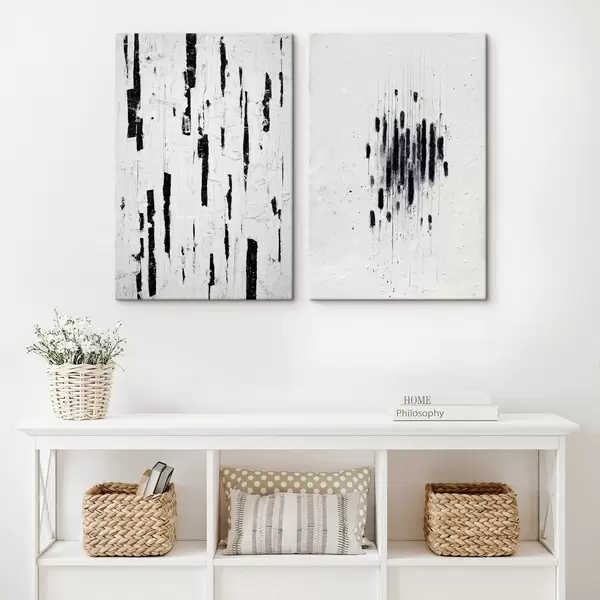 Schilderij Abstracte kunst in zwart-wittinten met een imitatie van natuurlijke texturen Art. m01097
