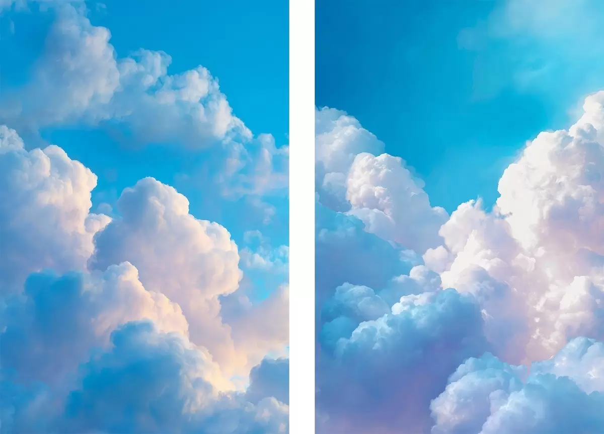 Schilderij Decoratieve compositie met majestueuze wolken tegen een blauwe lucht Art. m01101