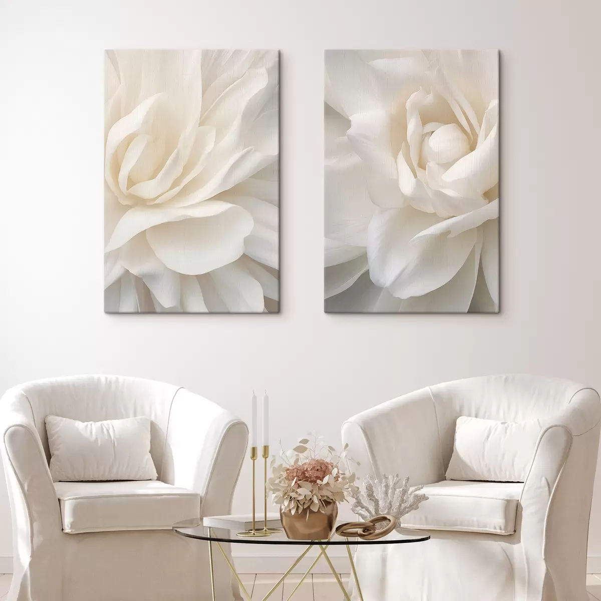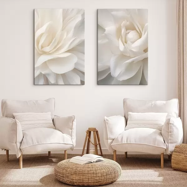 Schilderij Abstracte witte bloem met delicate, gelaagde bloemblaadjes, minimalistische kunst Art. m01120