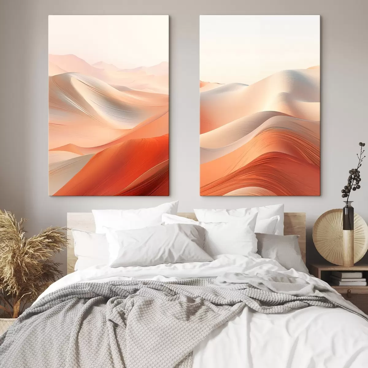 Schilderij Abstract woestijnlandschap met vloeiende zandduinen in warme oranje en witte tinten Art. m01123