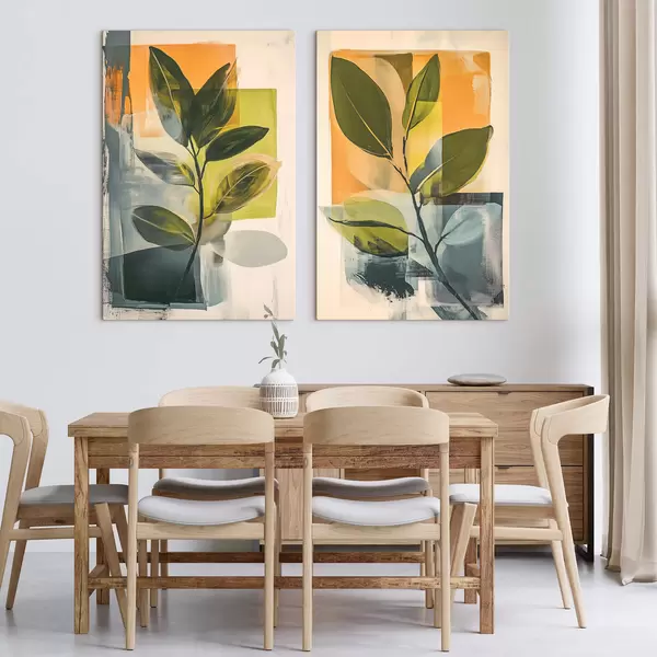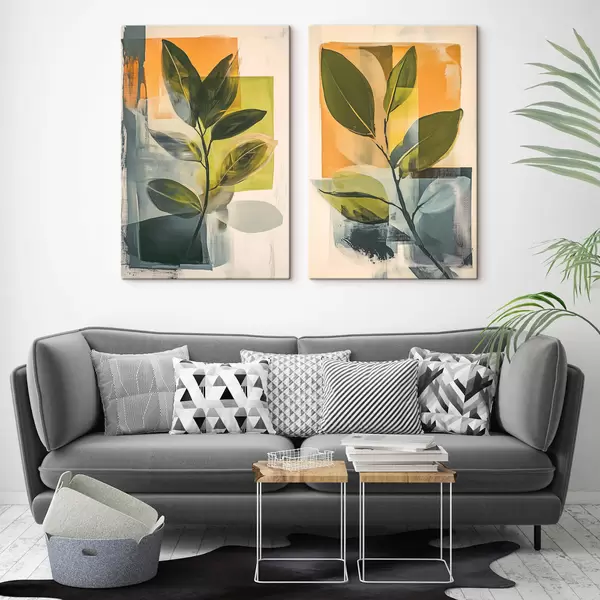 Schilderij Takken met bladeren op een abstracte achtergrond Art. m01132