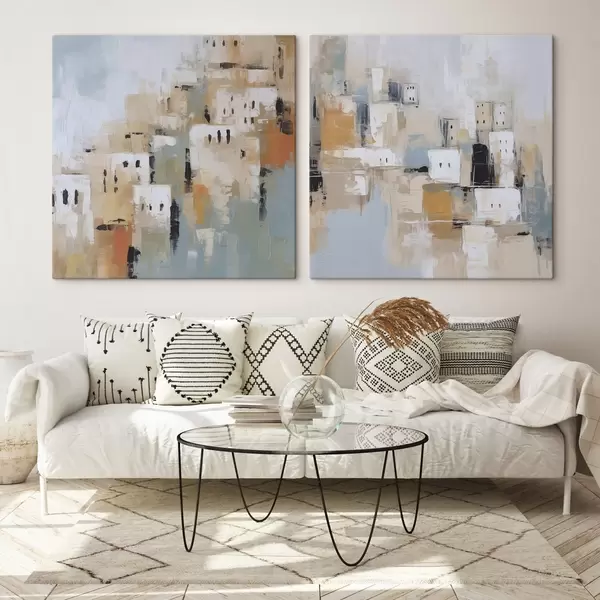 Het schilderij kan direct na ontvangst worden opgehangen. Het schilderij wordt opgespannen op een 2 cm breed houten spieraam.