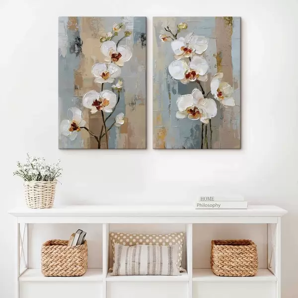 Schilderij witte orchideebloemen in de stijl van een olieverfschilderij Art. m01175