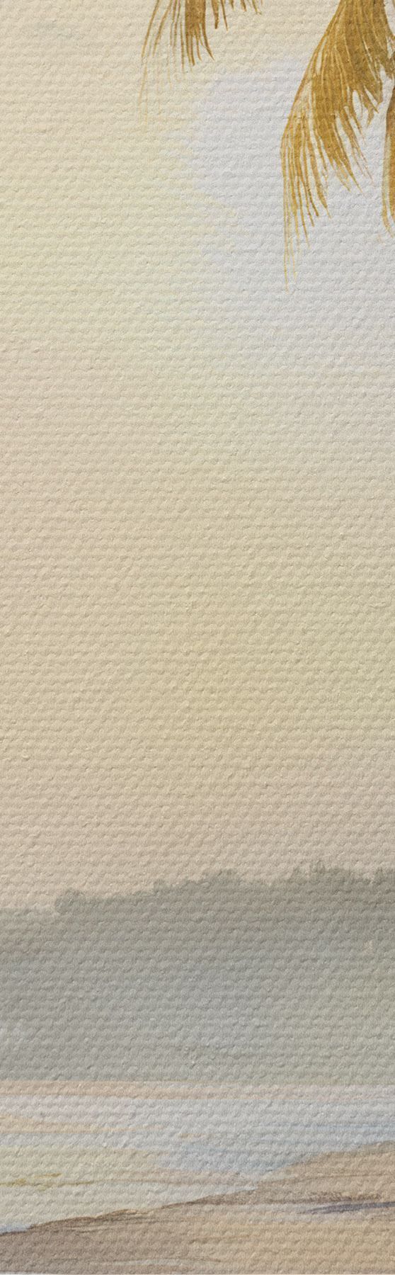 Schilderij zonsondergangstrand op een eiland in aquarelstijl Art. m01177