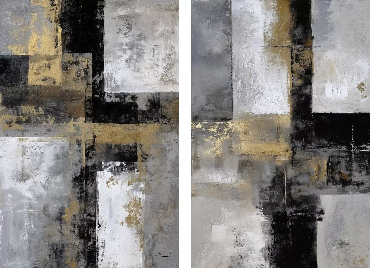 Schilderijen hedendaagse textuurabstractie in zwart-, grijs- en wittinten m01179