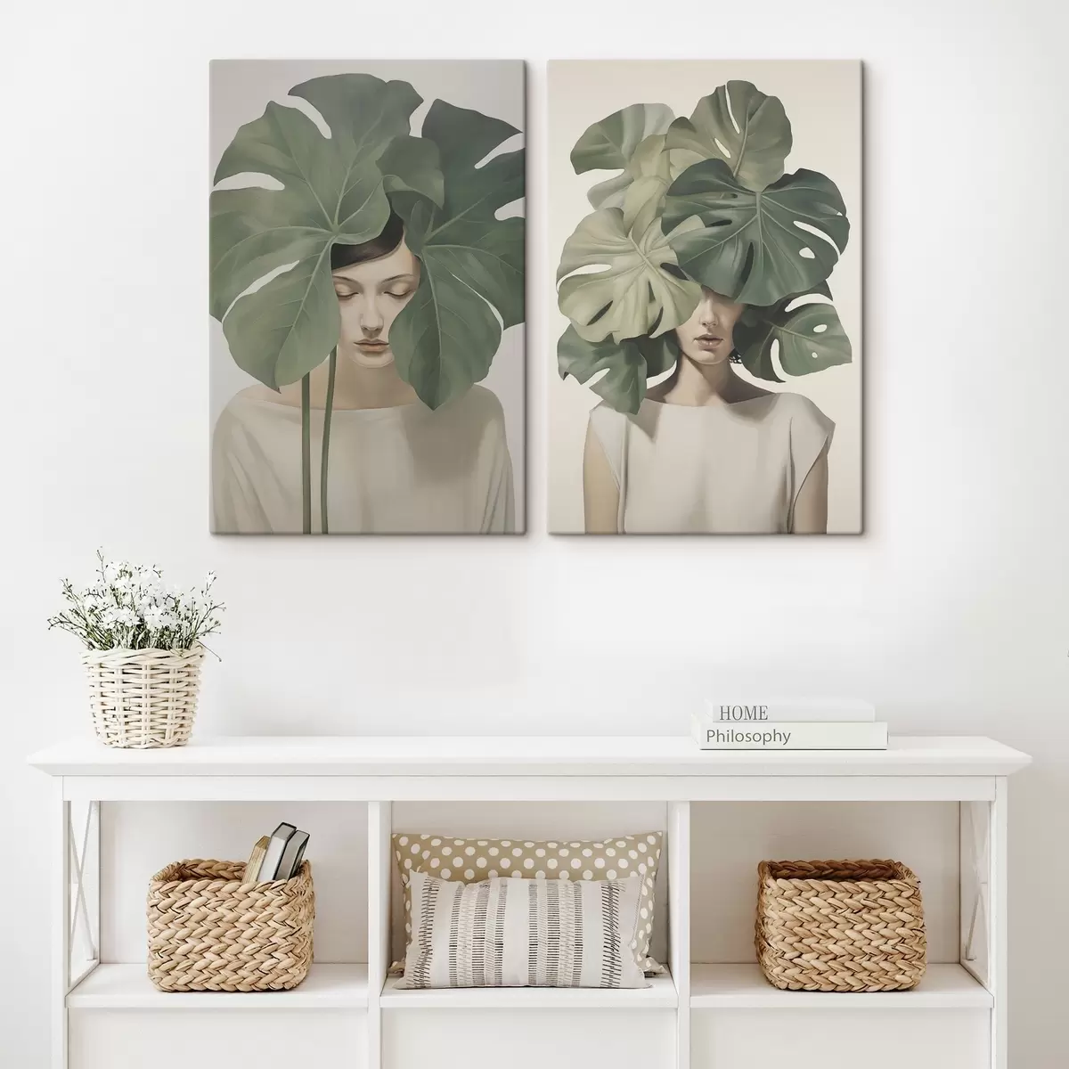 Schilderij Meisje met bladeren Art. m01185