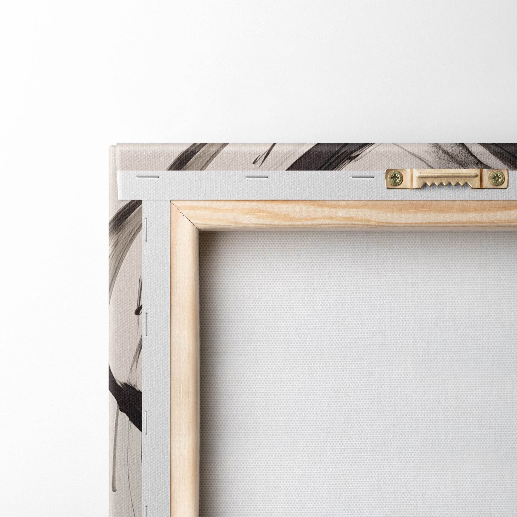 Om het doek op te spannen op spielatten zonder de afbeelding te beschadigen, gebruiken we gespiegeld beeld.