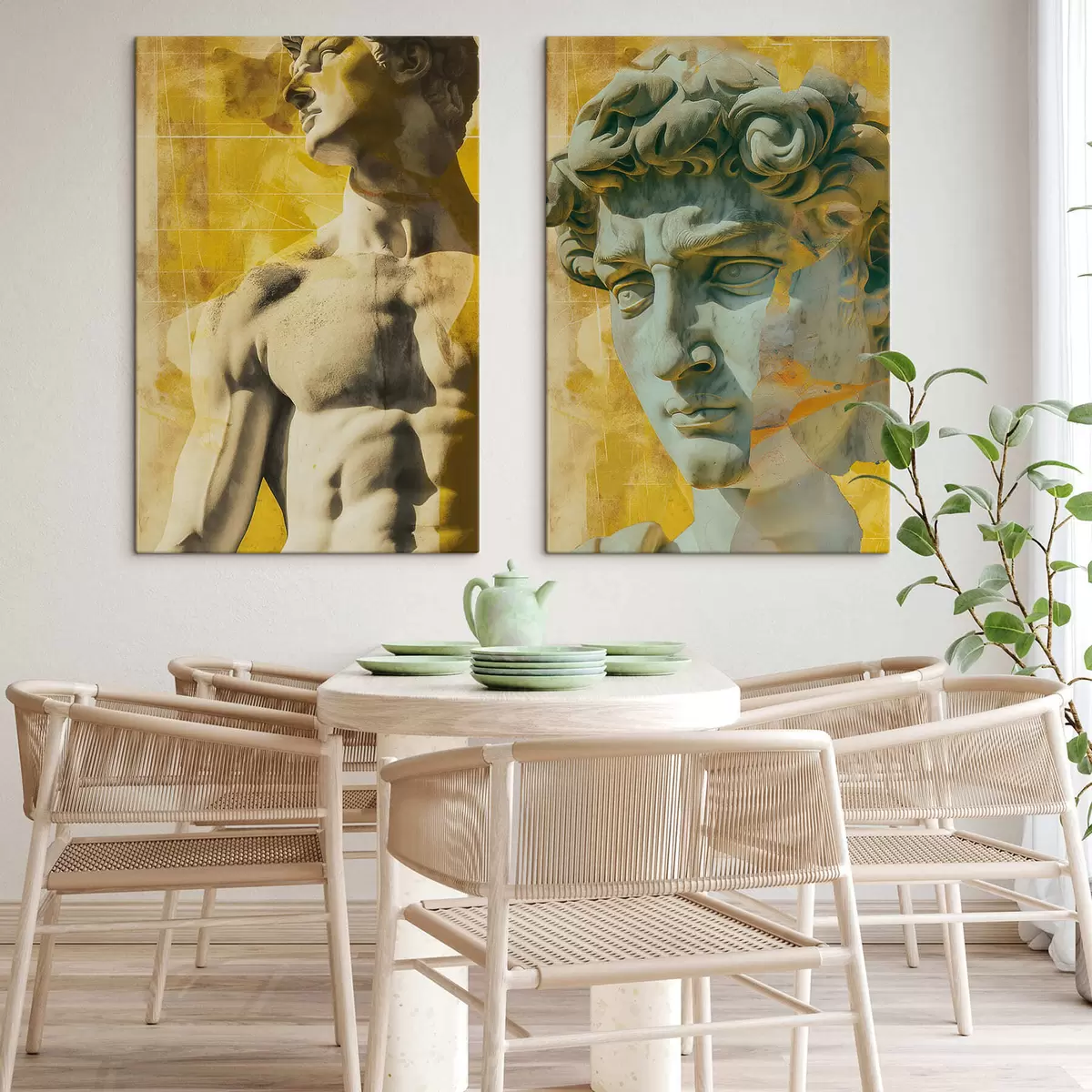 Er zijn drie soorten materiaal te bestellen: Economic Canvas - een dicht en duurzaam materiaal voor digitaal printen, identiek aan schildersdoek, waterdicht oppervlak, realistische weergave van details, materiaal met gemiddelde korrel. Premium Canvas - de textuur lijkt op die van schildersdoek (verweven kleine draden). Zachte, gedetailleerde reproductie van de afbeelding op een mat oppervlak. Eco-Premium - hoogwaardige 100% katoenen stof. Dankzij de natuurlijke katoenvezels is het materiaal duurzaam en slijtvast. Uitstekende kleurweergave en detail.