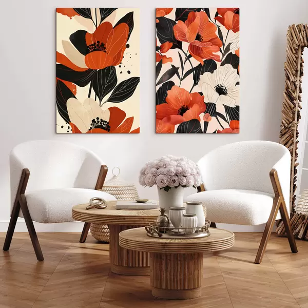 Schilderij Bloemstuk in warme tinten Art. m01228