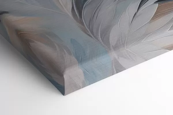 Schilderij Abstract schilderij van veren in tinten wit, blauw en bruin, met een zachte, vloeiende textuur en een lichte achtergrond. Art. m01234