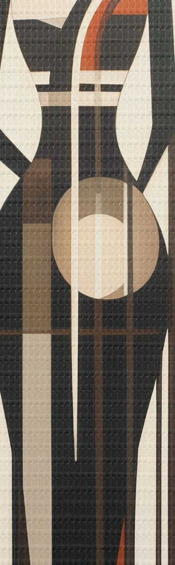 Schilderij Gestileerde vrouwelijke figuren met geometrische elementen tegen een abstracte achtergrond van verticale lijnen en cirkels Art. m01237