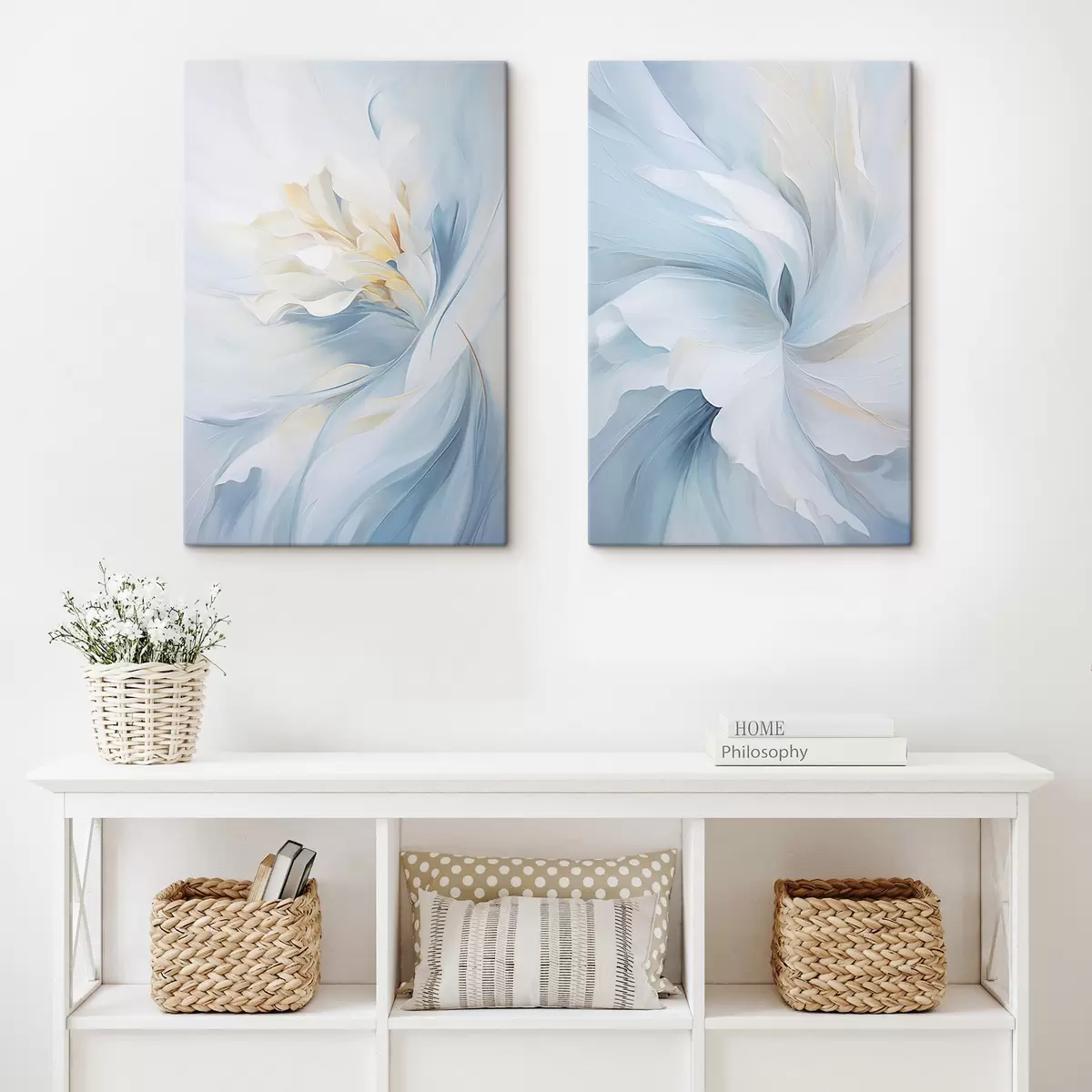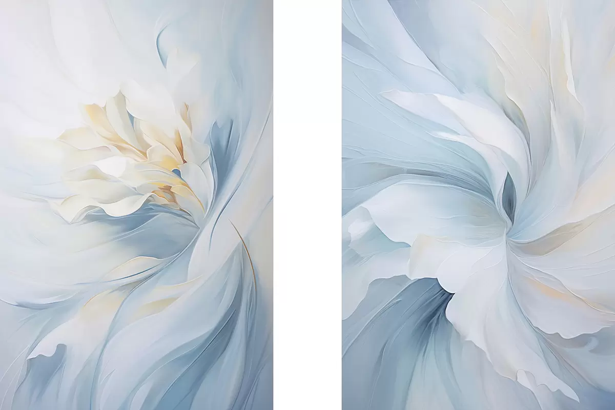 Schilderij Abstracte, delicate, doorschijnende bloemblaadjes die naar binnen wervelen met zachte verlichting en een schilderachtige textuur. Art. m01244